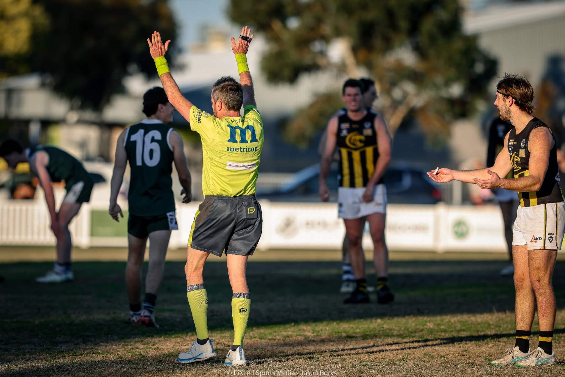 Players, especially those wearing yellow and black, were left nonplussed when the siren, which was wrongly sounded by the timekeepers only minutes earlier, again went off with 26 minutes on the clock as veteran Joffy Simpkin was converting a set shot.